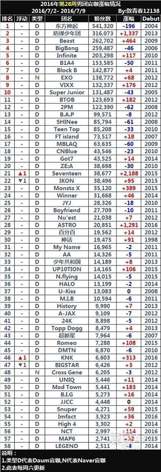 ![]() ![]() [Gaon Music Chart] SEVENTEEN VERY NICE in the third week of July, 2016 and total digital sales ![]() Gaon Chart (July 17 - July 23) #59 Digital Chart #42 Download Chart - 28,757 #74 Streaming Chart - 965,440 #9 Album Chart #1 Social Chart - 59,597 ![]() ![]() SEVENTEEN VERY NICE in The Third Week on South Korean Music Weekly Charts Melon: 74 (▼7) Genie: 56 (▼3) Bugs: 28 (▼2) Mnet: 69 (▲3) Naver: 41 (▼4) Olleh: Out Soribada: 66 (▼2) ![]() Daum Fancafe (July 2 - July 9) ![]() SEVENTEEN: 21 (▲1) SEVENTEEN:+2,188 (38,677) ![]() ![]() ![]() _________________ ![]() ![]() |