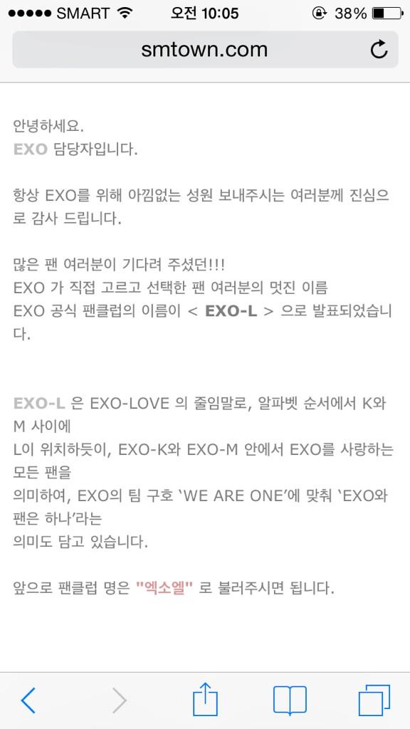มาจาก EXO - LOVE และ L ยังเป็นตัวอักษรระหว่าง K กับ M ซึ่งหลอมรวมเราเป็นหนึ่งเดียวกันค่ะ