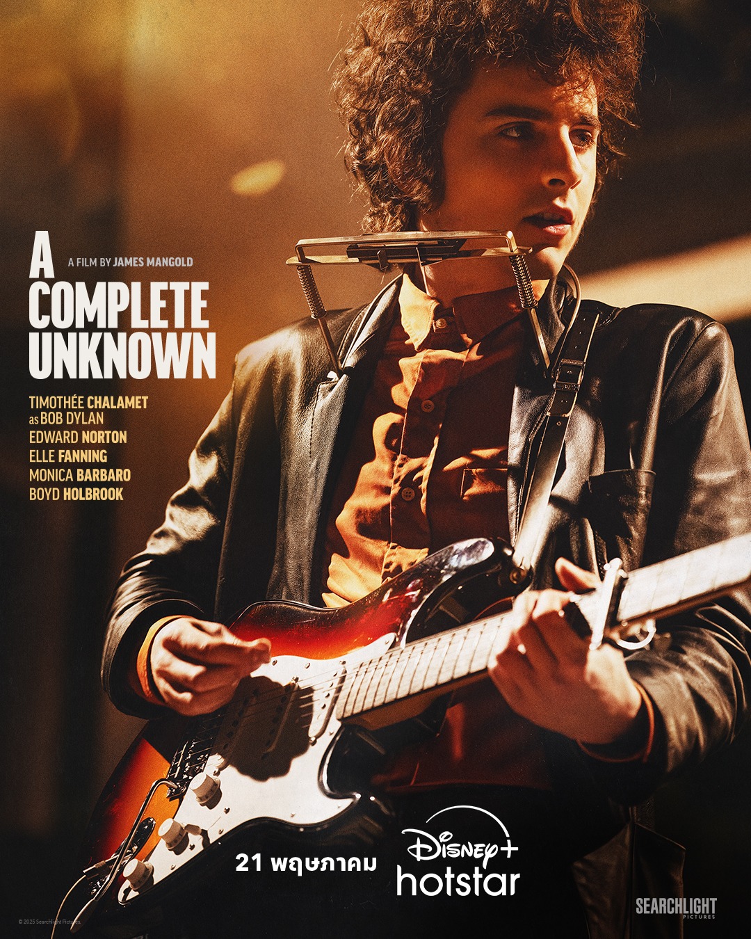 กรุงเทพฯ, 21 พฤษภาคม 2568 ? Disney+ Hotstar เสิร์ฟคอนเทนต์คุณภาพระดับโลกอย่างต่อเนื่อง ด้วยการเปิดตัวภาพยนตร์ที่คอหนังทุกคนตั้งตารออย่าง ?A Complete Unknown? ภาพยนตร์ชีวประวัติของ บ็อบ ดีแลน ศิลปินผู้เป็นตำนานแห่งยุค 60s ที่ถ่ายทอดช่วงเวลาสำคัญของการเปลี่ยนผ่านในชีวิตและเส้นทางอาชีพที่พลิกโฉมวงการดนตรีโลก พร้อมให้รับชมได้แล้ววันนี้บน Disney+ Hotstar นอกจากนี้ คอหนังคุณภาพยังจะได้พบกับภาพยนตร์รางวัลที่ได้รับเสียงชื่นชมจากนักวิจารณ์อีกเพียบ ให้แฟน ๆ ได้เลือกสตรีมกันแบบจุใจในที่เดียว