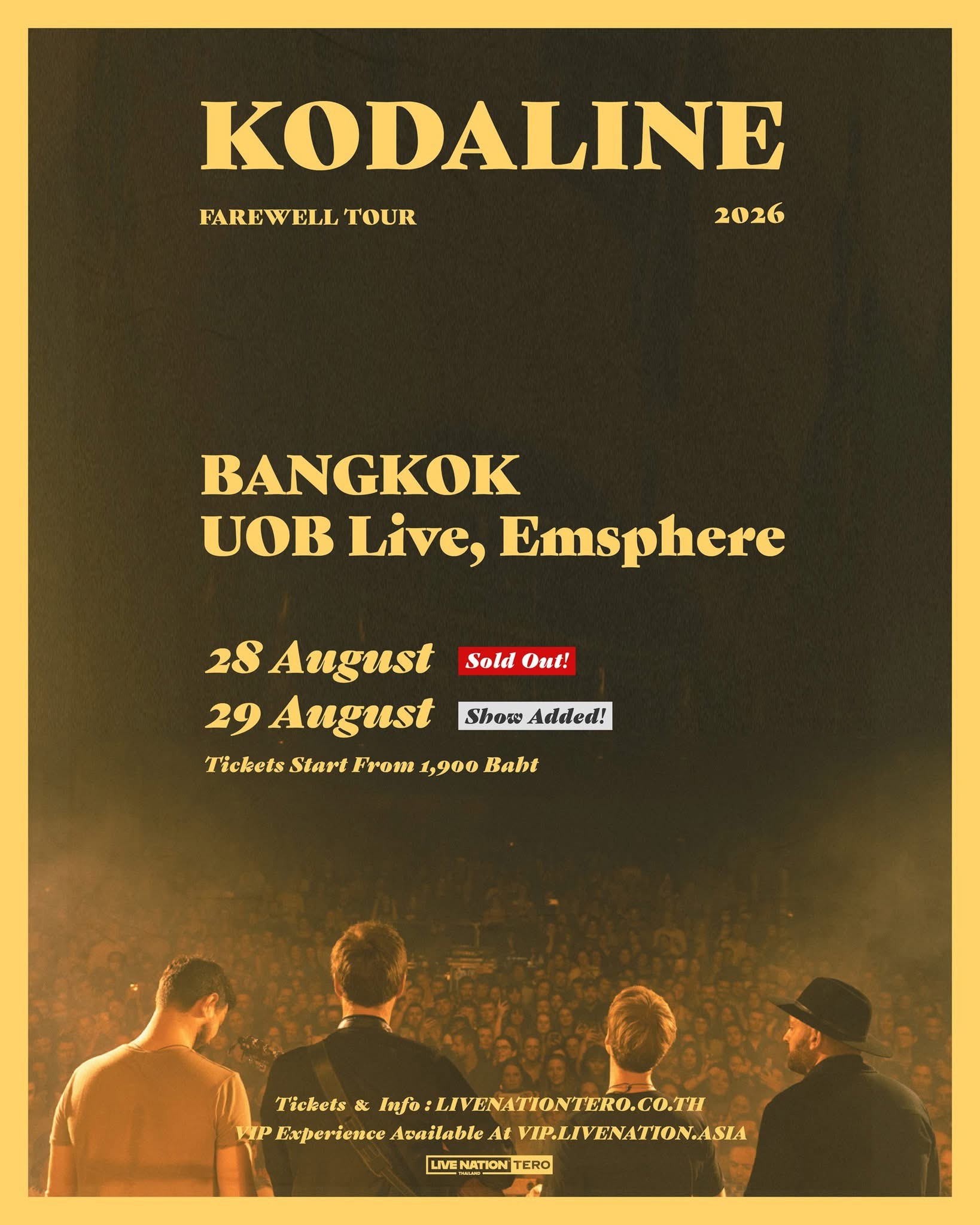 KODALINE วงอินดี้โฟล์กยอดฝีมือจากไอร์แลนด์กลับมาเปิดคอนเสิร์ตที่ไทยอีกครั้ง แต่ครั้งนี้มาแบบทัวร์อำลาส่งท้ายในชื่อ Kodaline Farewell Tour" 2026