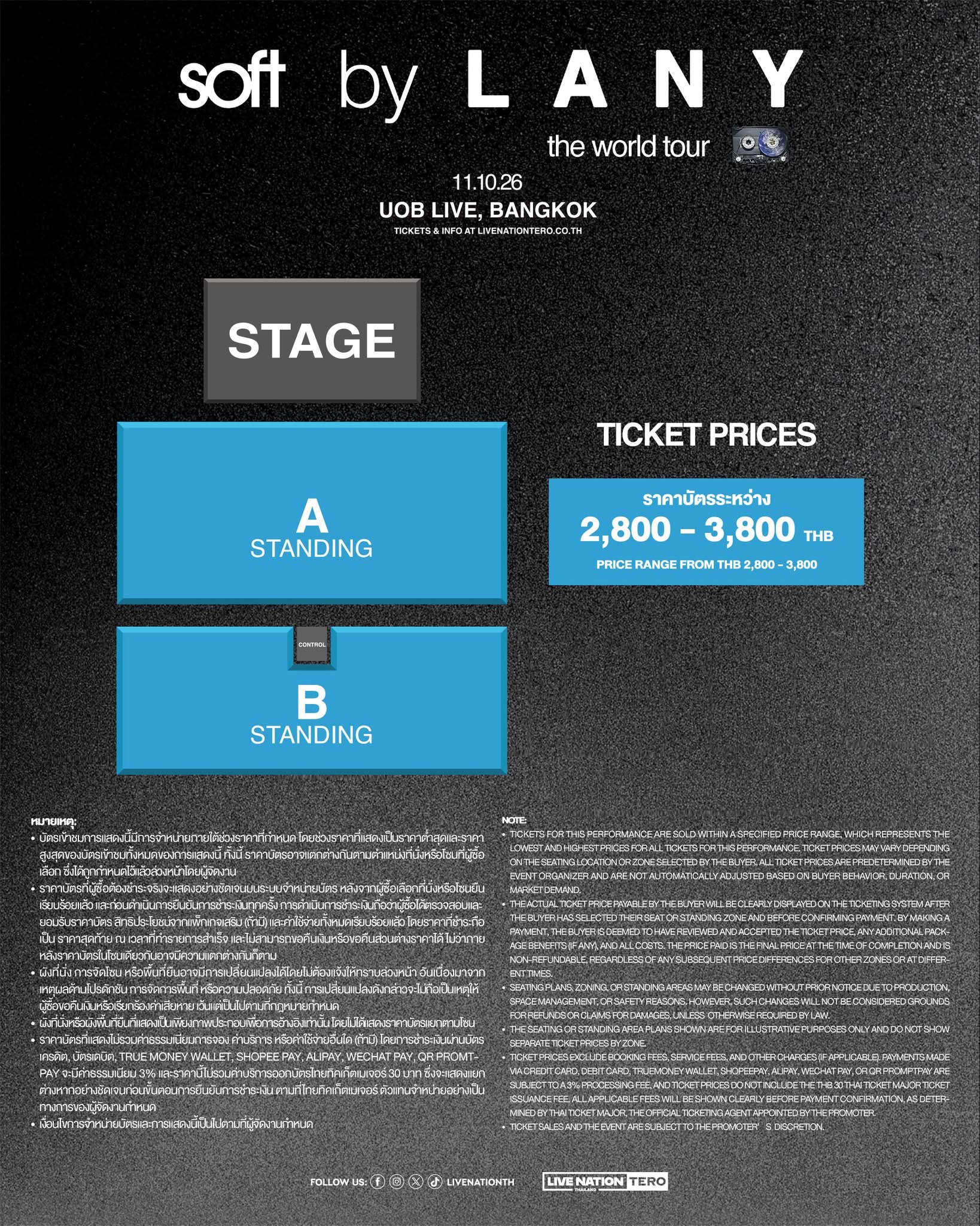 สมาชิกไลฟ์ เนชั่น เทโร รับสิทธิ์พรีเซลส์ได้ในวันพฤหัสบดีที่ 26 มีนาคม เวลา 12.00 น. ? 23.59 น. สมัครสมาชิกฟรีที่ livenationtero.co.th เปิดจำหน่ายบัตรรอบทั่วไปในวันศุกร์ที่ 27 มีนาคม เวลา 10.00 น. เป็นต้นไป ที่ thaiticketmajor.com
