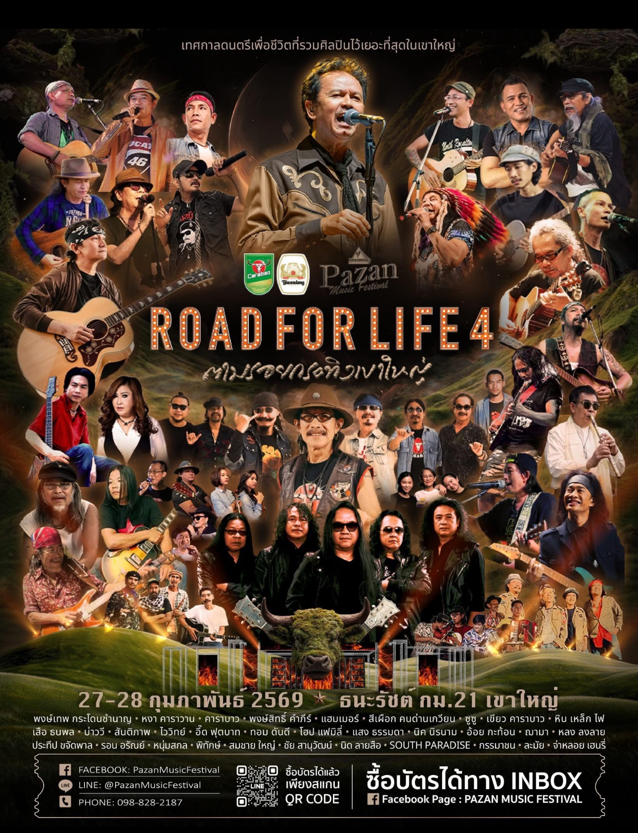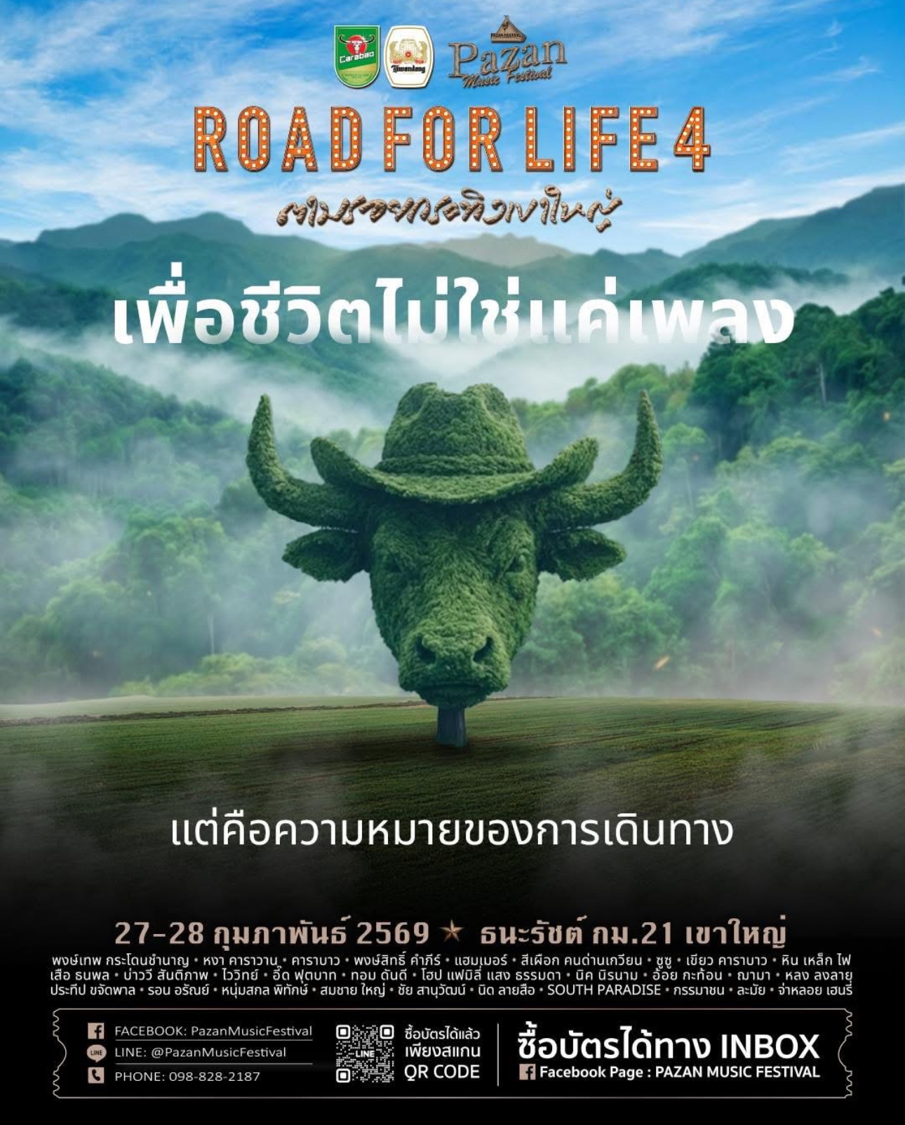เตรียมพบกับปรากฏการณ์ดนตรีครั้งยิ่งใหญ่ที่สายแคมป์ปิ้งและคอเพลงเพื่อชีวิตห้ามพลาด! Pazan Music Festival ประกาศจัดงาน ROAD FOR LIFE 4 ตามรอยกระทิงเขาใหญ่? มหากาพย์คอนเสิร์ตเพื่อชีวิต 2 วัน 2 คืนเต็ม บนเวทีความยาวกว่า 50 เมตร! ท่ามกลางอ้อมกอดของขุนเขาพื้นที่กว่า 70 ไร่ ณ ธนะรัชต์ กม.21 เขาใหญ่ ในวันที่ 27?28 กุมภาพันธ์นี้!